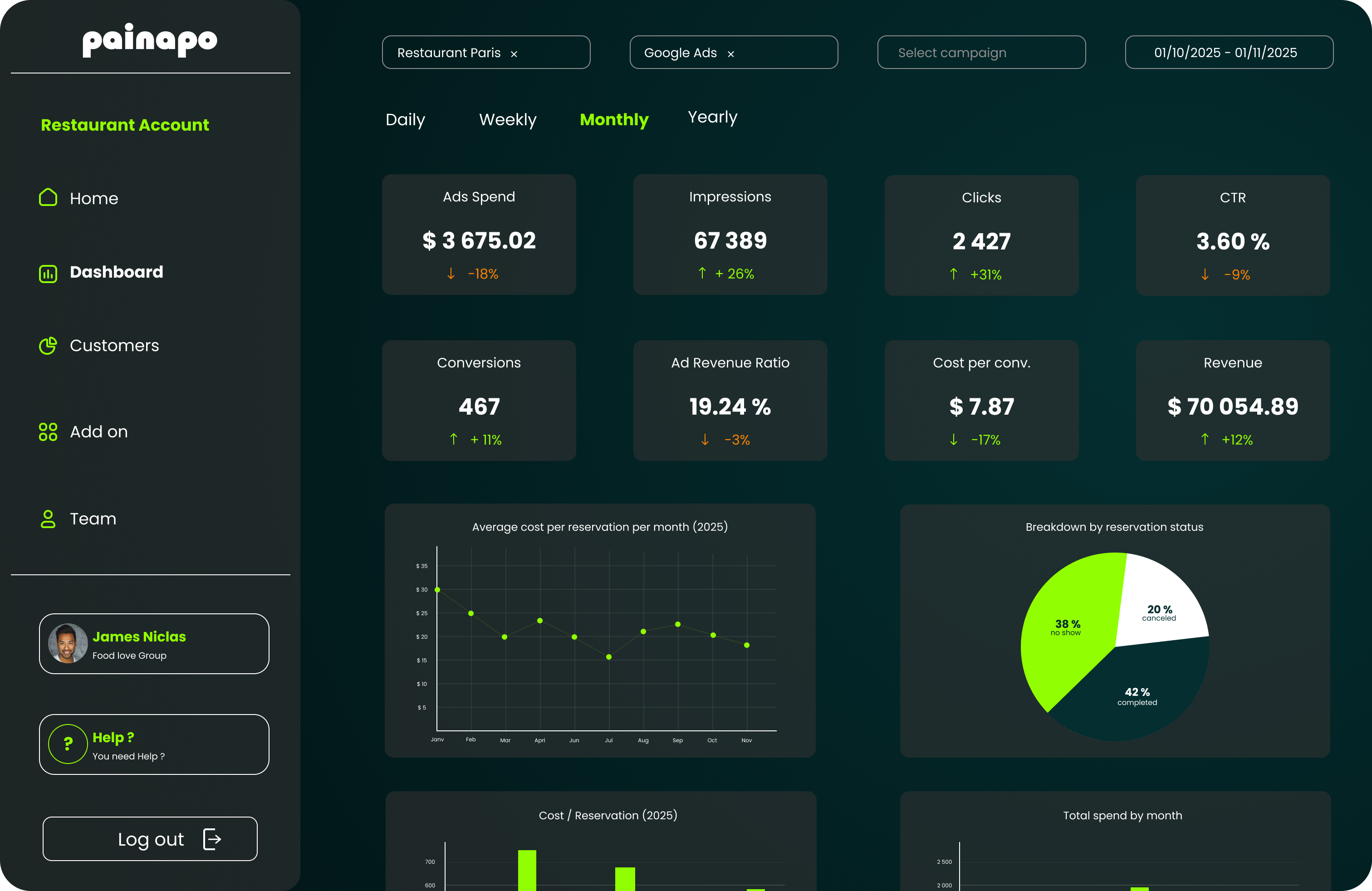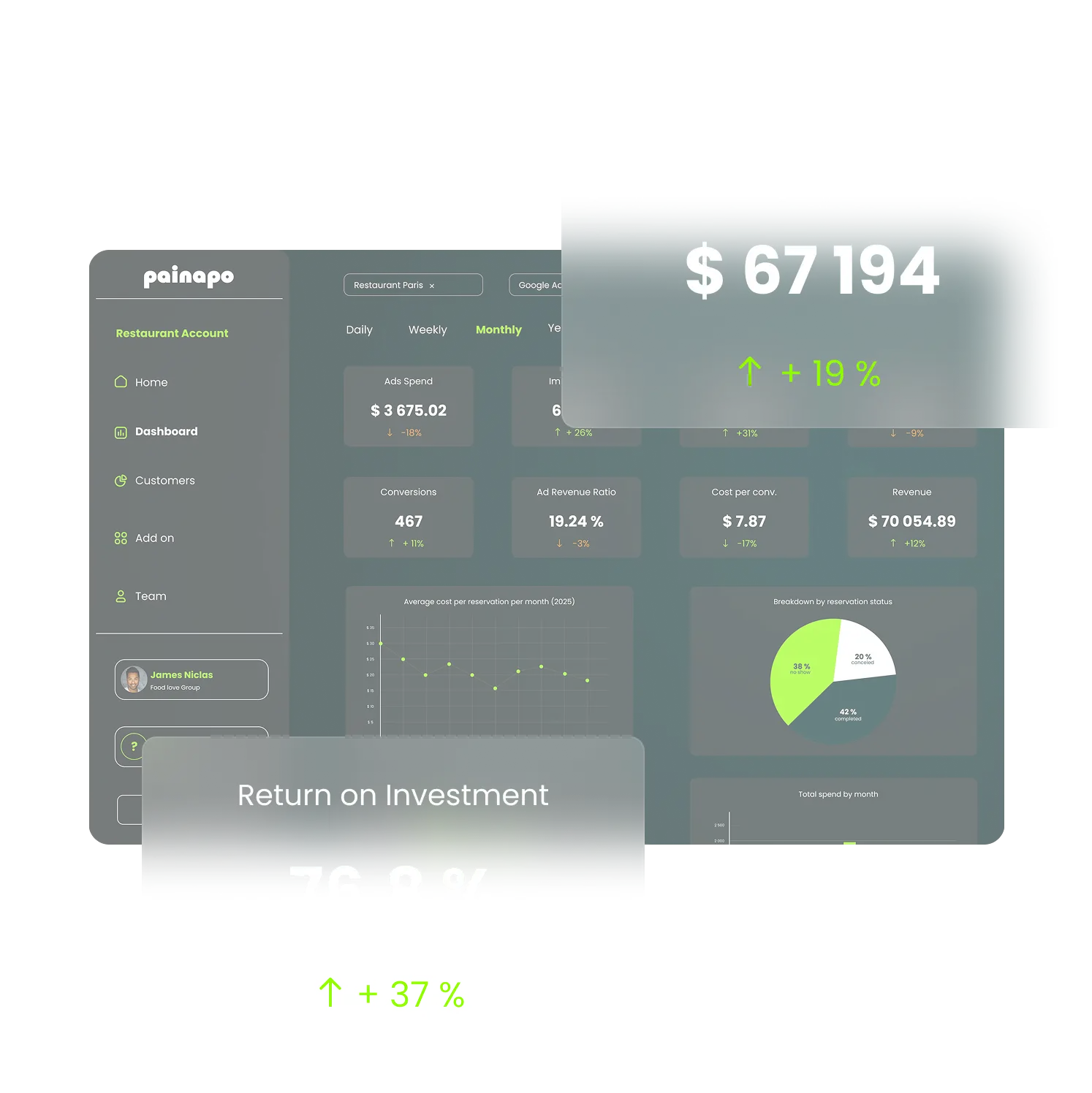 Connected to your reservation system, Painapo tracks every conversion all the way to the plate. Make decisions that truly boost your profitability